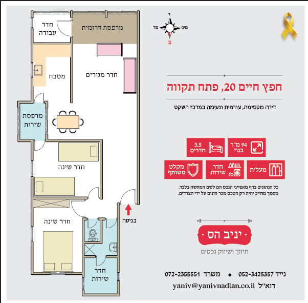 ישנו חדר שירות נוסף למרפסת השירות, שיכול לשמש למגוון מטרות. הוא נוסף ל – 3.5 החדרים המתוארים לעיל..